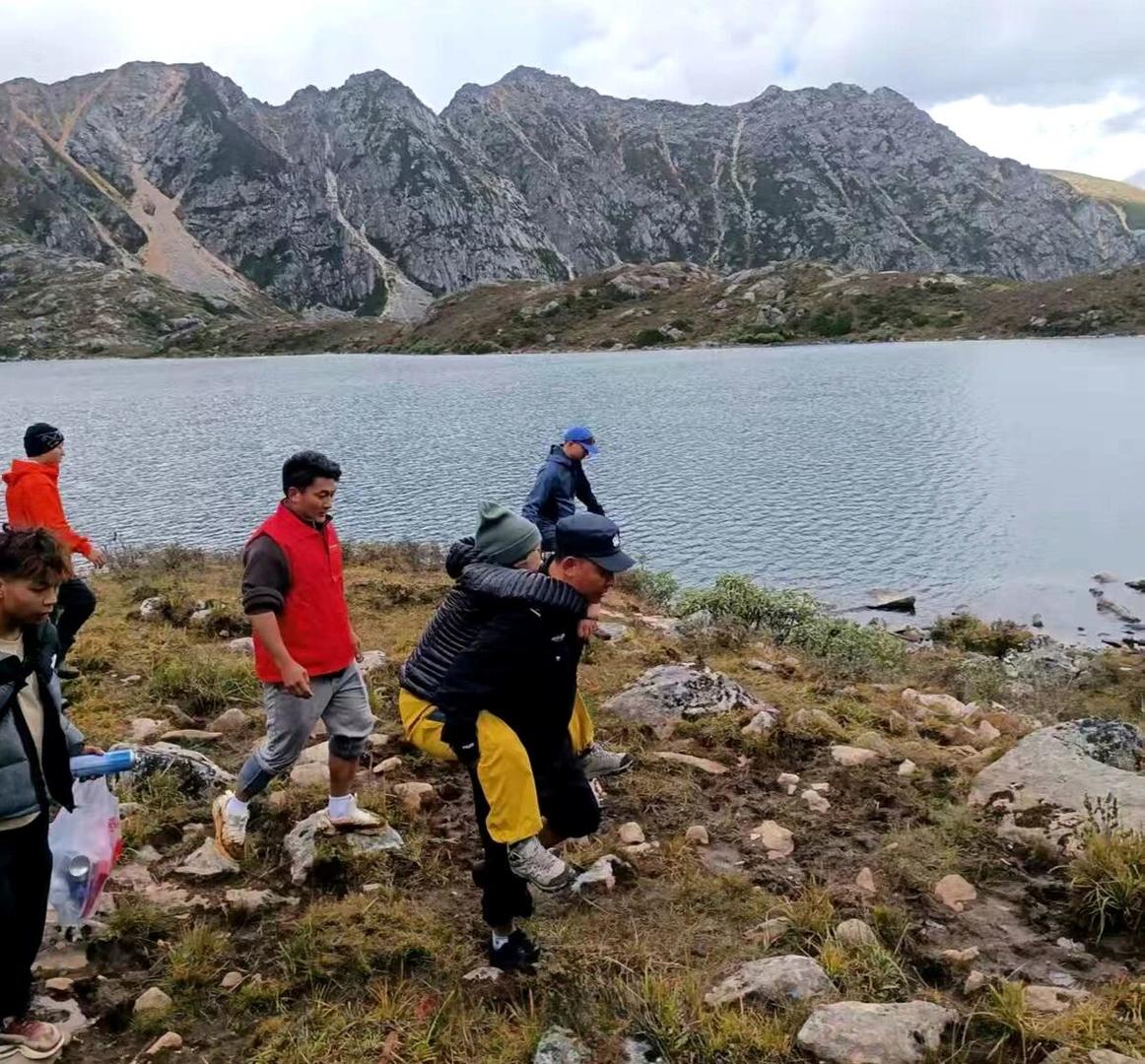 10月2日,在海拔4700米的四川甘孜丹巴县丹东镇的卓雍措湖垭口附近,一名女游客出现高反、失温等情况,路过游客和当地警方、镇政府工作人员、医务人员接力救援,成功将女游客运送下山送至医院。